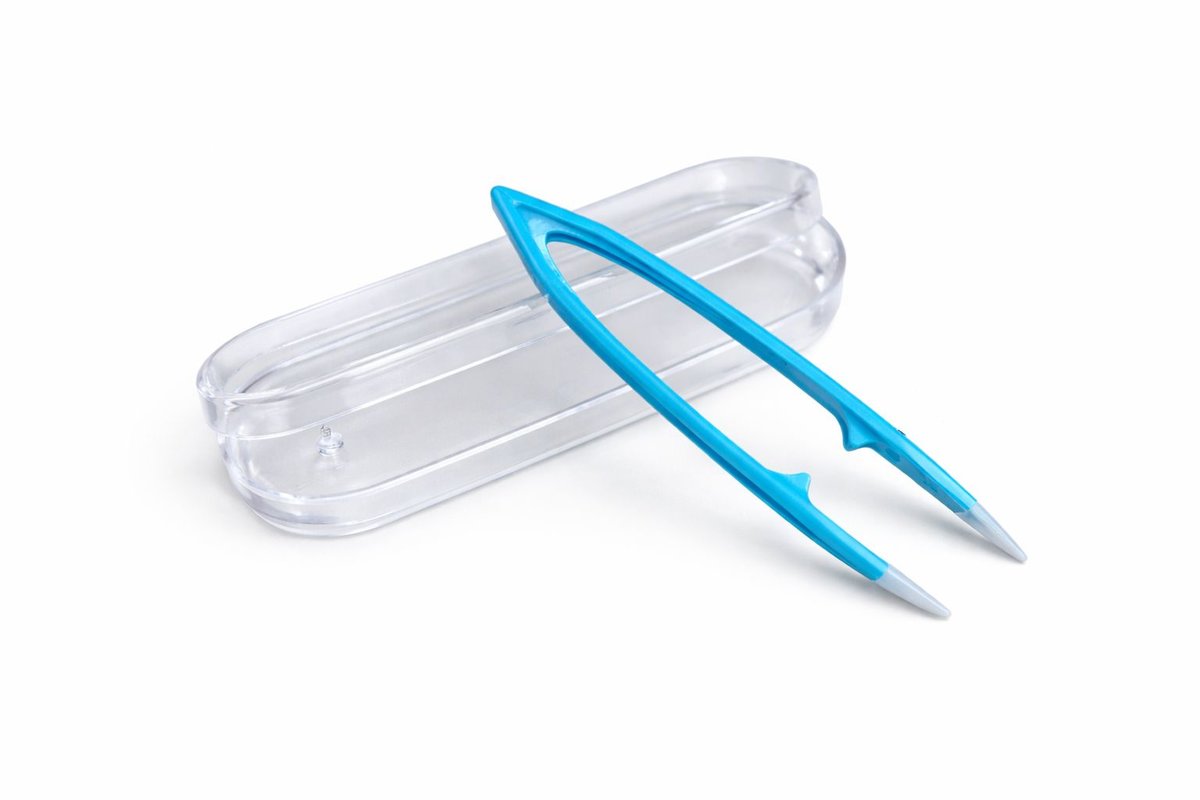 Pinzeta na kontaktné šošovky v puzdre, veľká – modrá